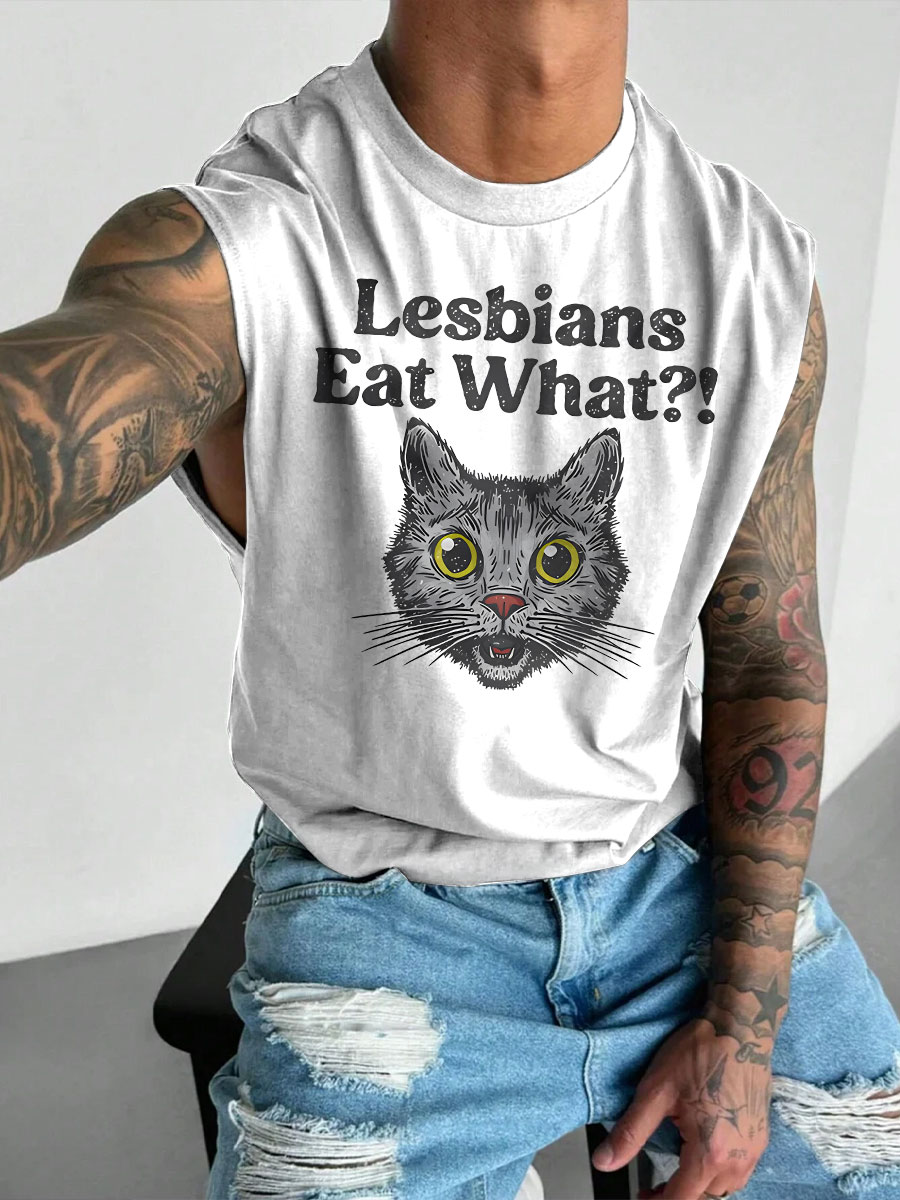 Men's Lesbians Eat What? Casual Print Wide Shoulder Vest