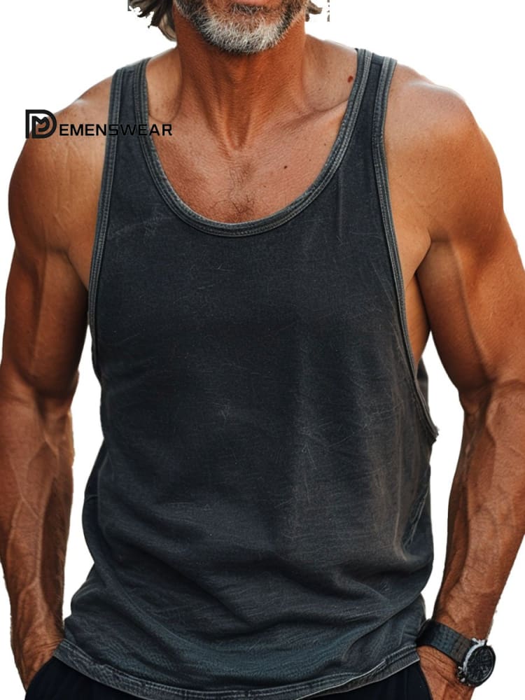 Men's Round Neck Retro Solid Color Casual Tank Top