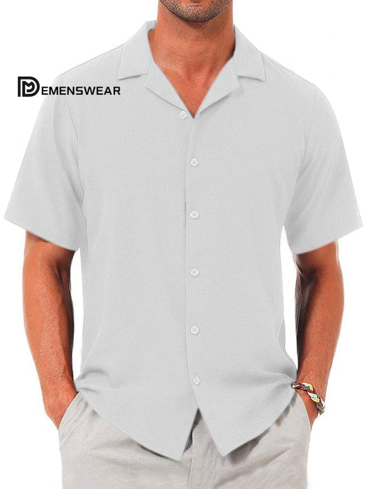 Men's Summer Solid Color Comfortable Puff Wrinkle Short Sleeve Shirt