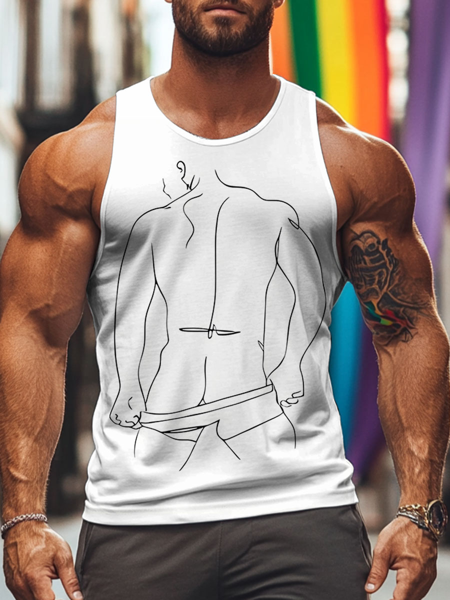 Male Line Art Rainbow LGBTQ Gay Print Men's Tank Top