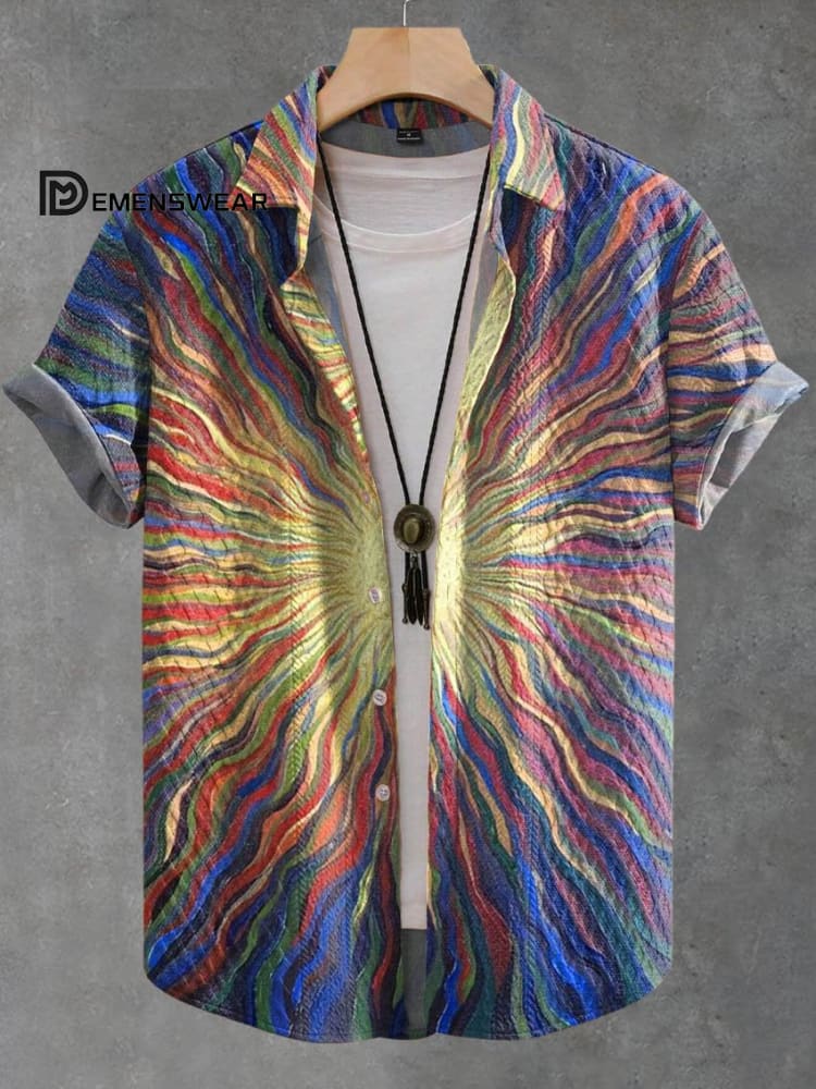 Vintage Simple Multicolor Line Art Print Casual Jacquard Shirt
