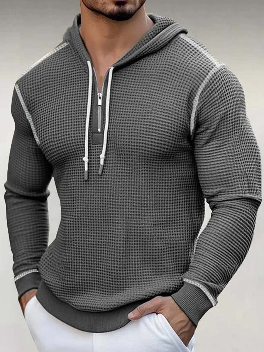 Men's Waffle Stripe Hoodie T-Shirt Top Casual Long Sleeve