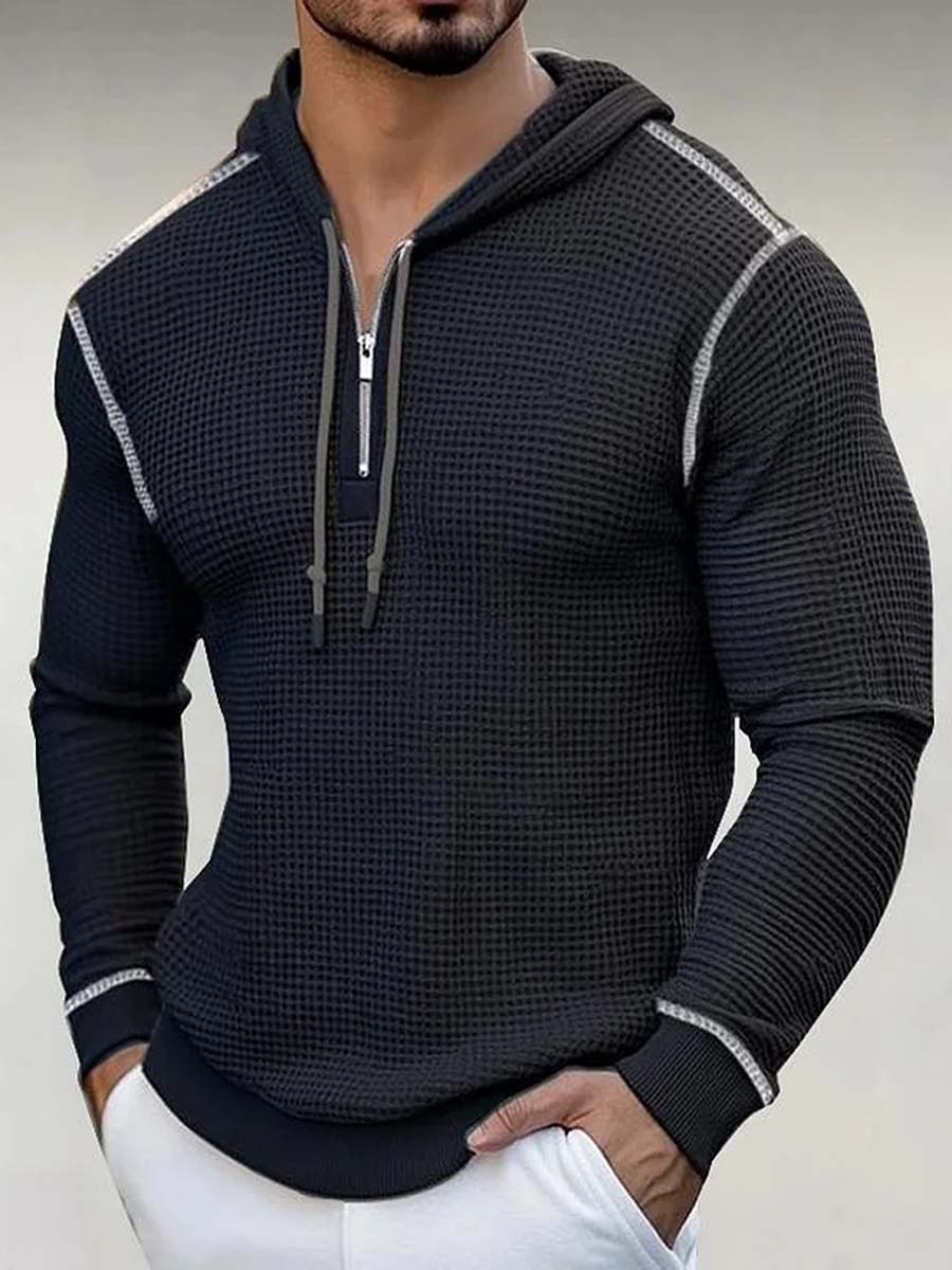Men's Waffle Stripe Hoodie T-Shirt Top Casual Long Sleeve