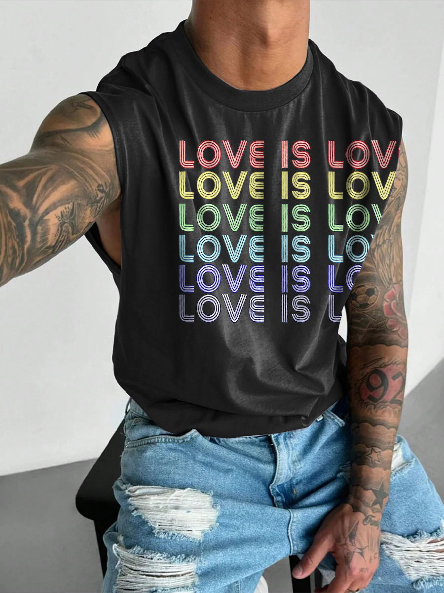 LOVE IS LOVE Pride Rainbow LGBTQ Gay Print Men's Wide Shoulder Vest
