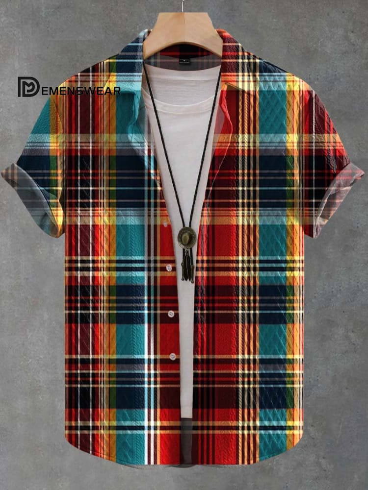 Gay LGBTQ Rainbow Vintage Plaid Art Print Casual Jacquard Shirt