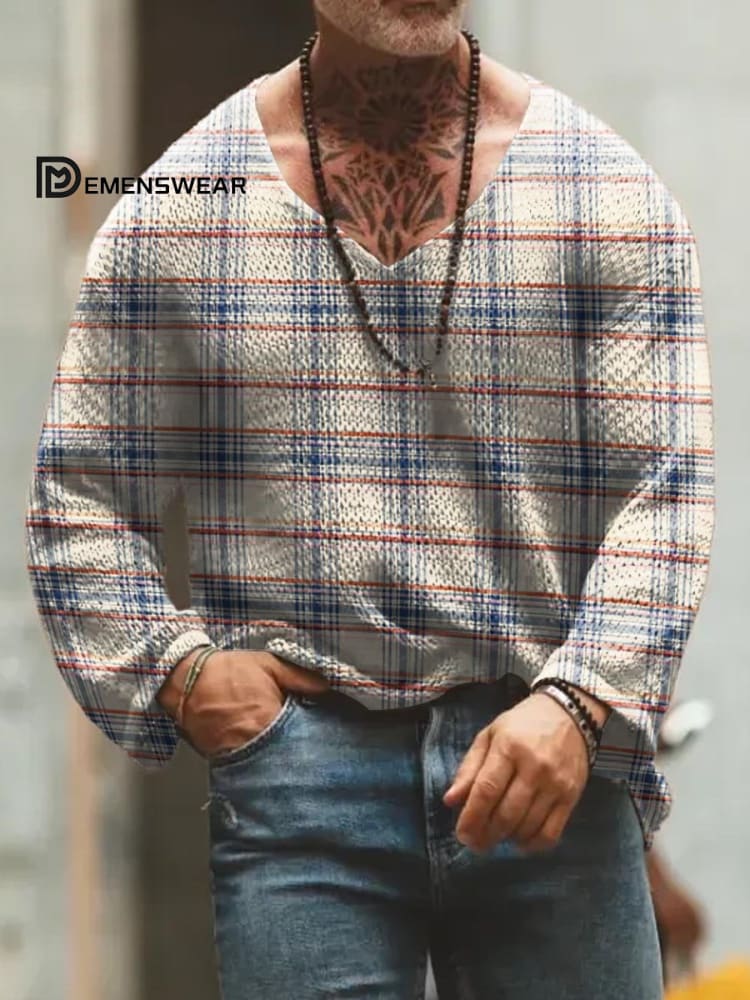 Gender: For Men Style: Casual Fit Type:Regular Shirt Length: Regular Sleeves Length: long sleeve Collar: V Collar Material:Blend knit Material Stretch: Slight Stretch Pattern Type: Weight: 0.7kg Package: 1 x Top