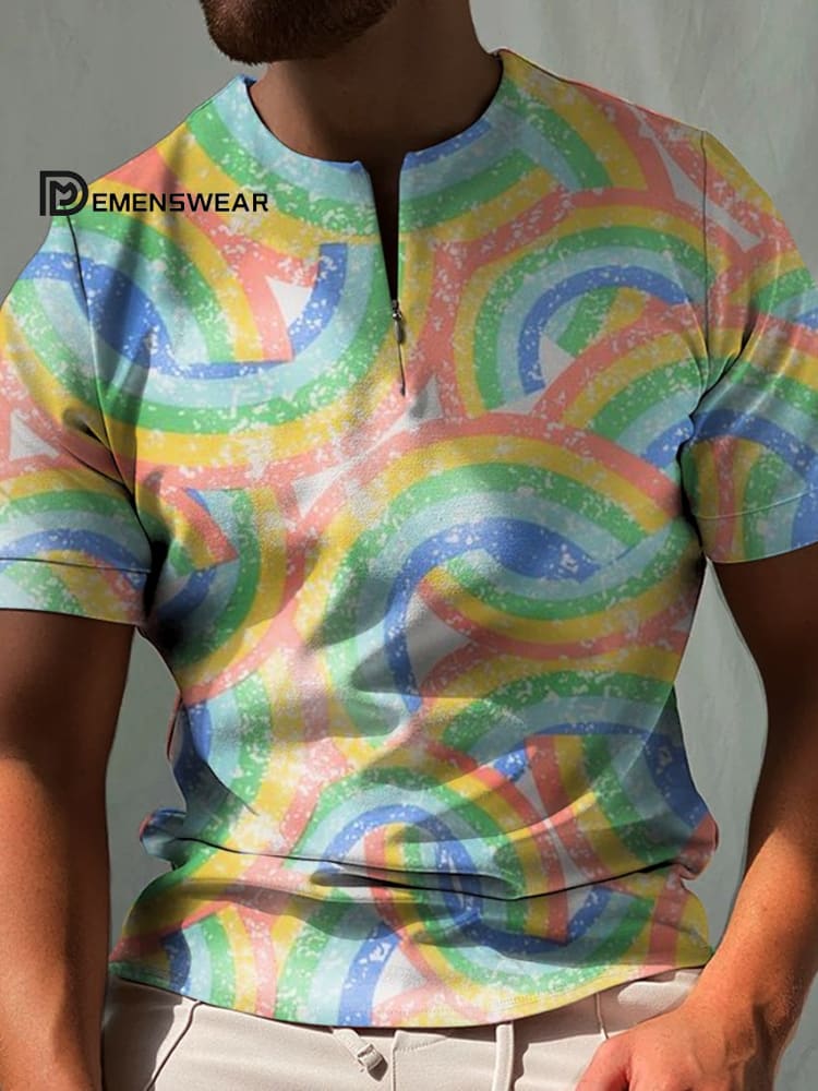 Hand Drawn Love Is Love, Rainbow Graphic Print 100% Cotton Zip Polo Shirt
