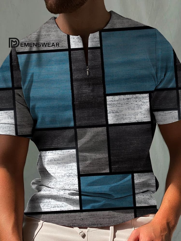 Leisure Arts Geometric mosaic Print 100% Cotton Zipper Polo Shirt