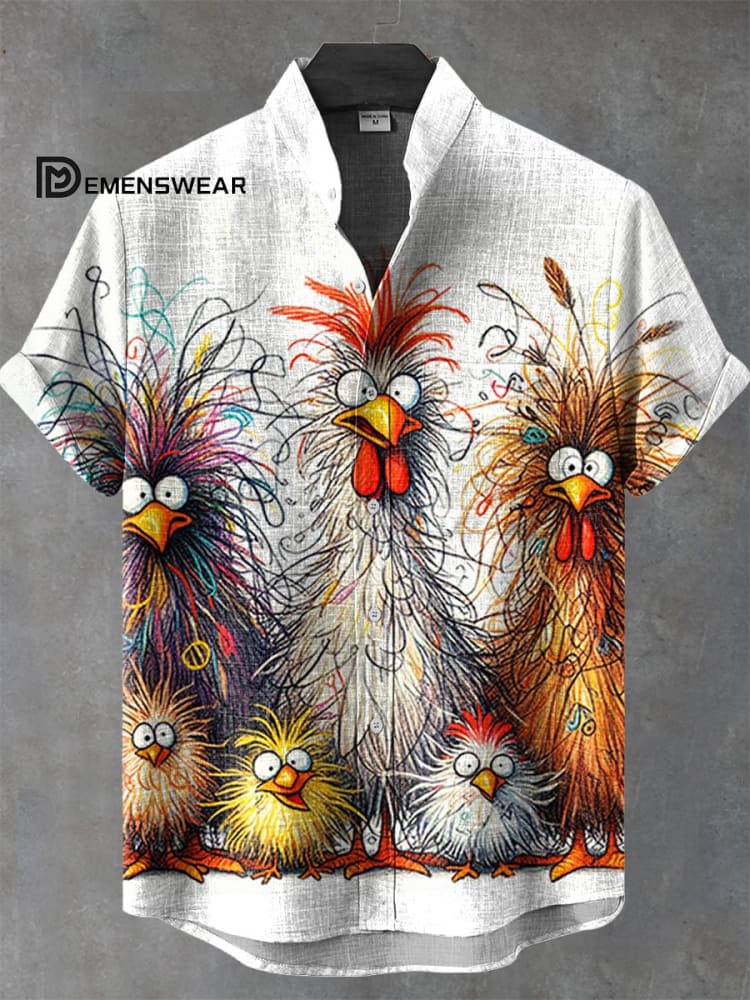 Funny Cute Chicken Famliy Art Print Casual 100% Cotton Shirt