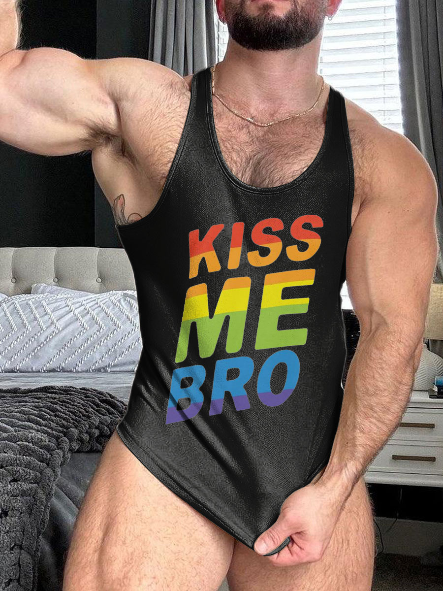 Kiss Me Bro Modern Rainbow Vintage Print 100% Cotton Casual Tank Top
