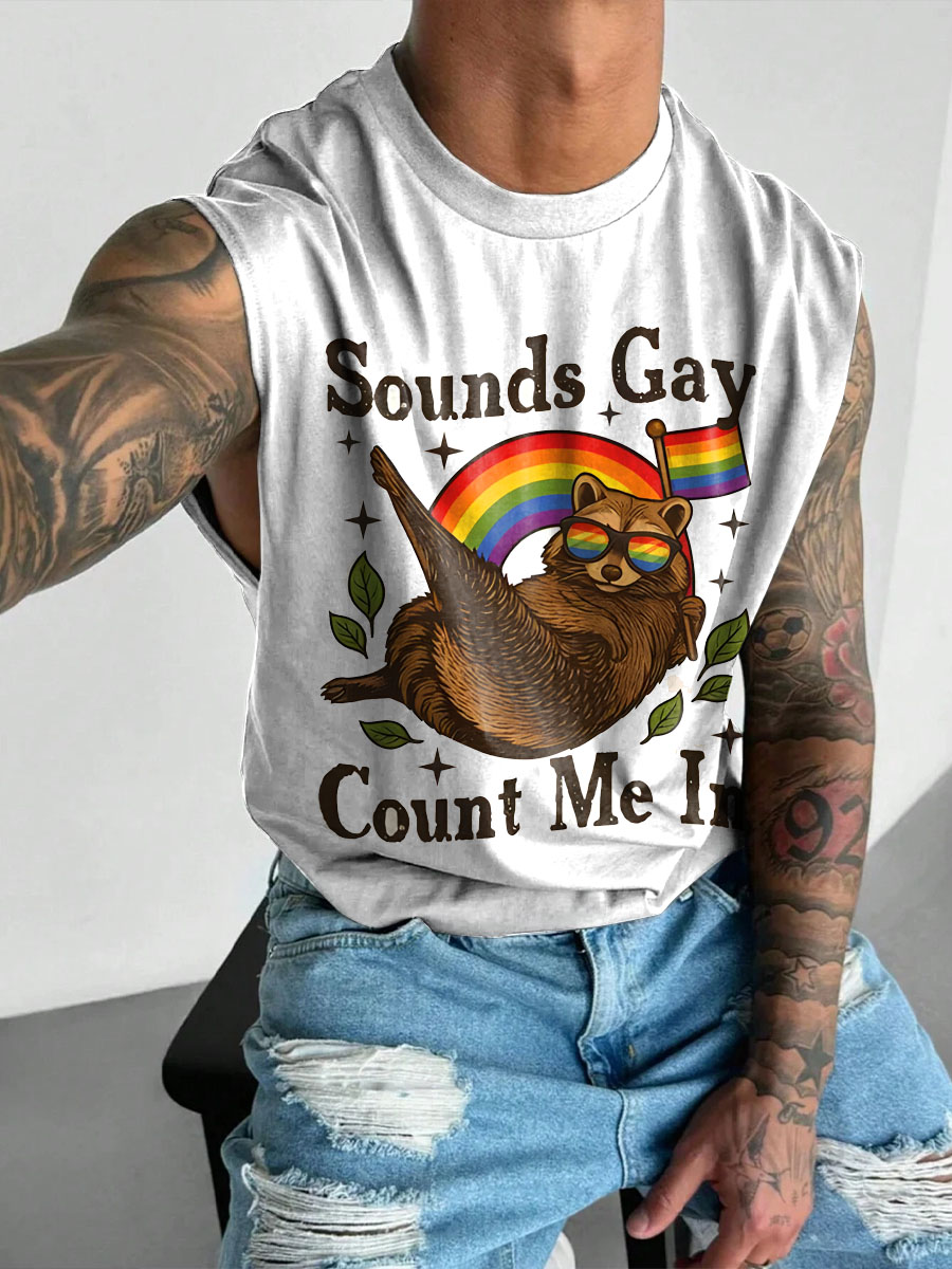 Sounds Gay Raccoon Rainbow Men's Gay LGBTQ Print Wide Shoulder Vest