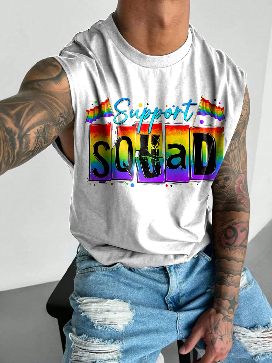 Support squad pride Rainbow Men's Gay LGBTQ Print Wide Shoulder Vest
