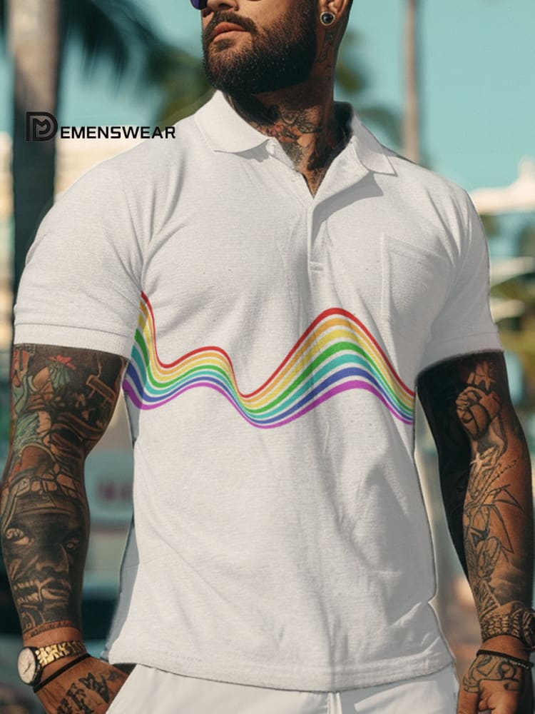 Men's Rainbow Stripe Art Print Casual POLO Shirt