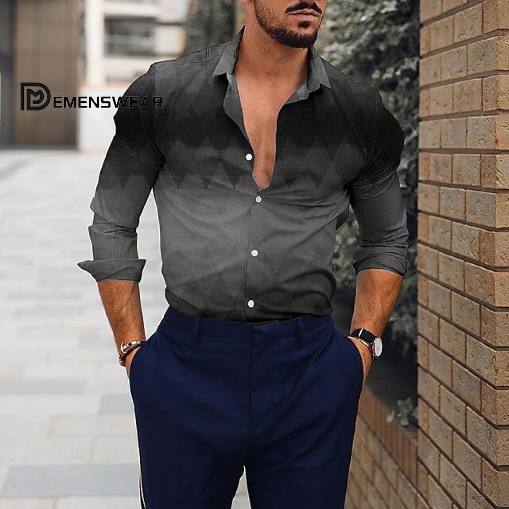 Men's Shirt Graphic Shirt Gradient Rainbow Outdoor Street Long Sleeve
