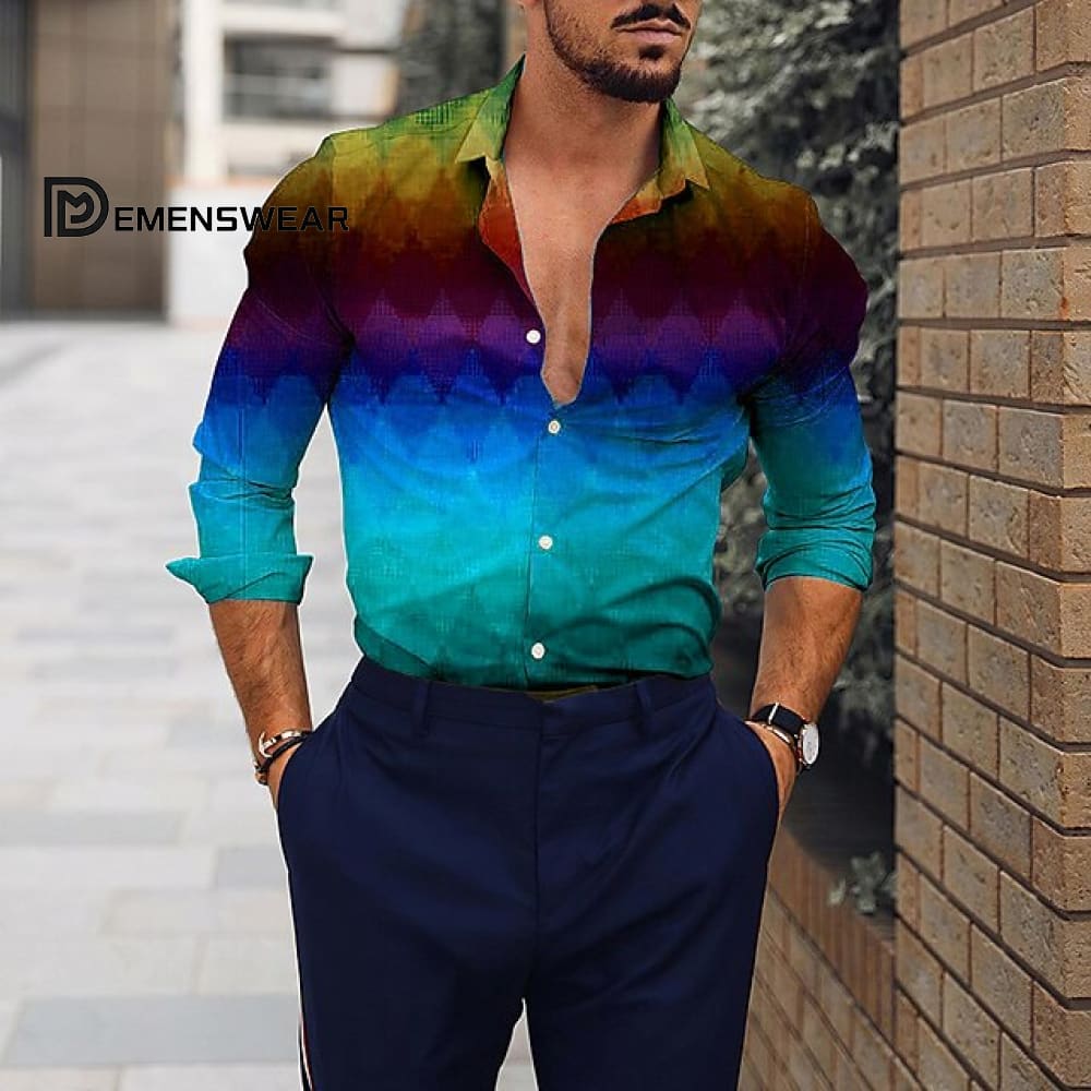 Men's Shirt Graphic Shirt Gradient Rainbow Outdoor Street Long Sleeve