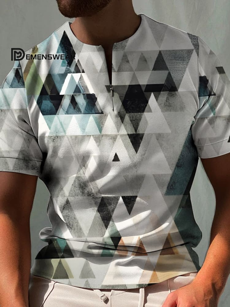 Simple Geometric Gradient Art Print 100% Cotton Zipper Polo Shirt
