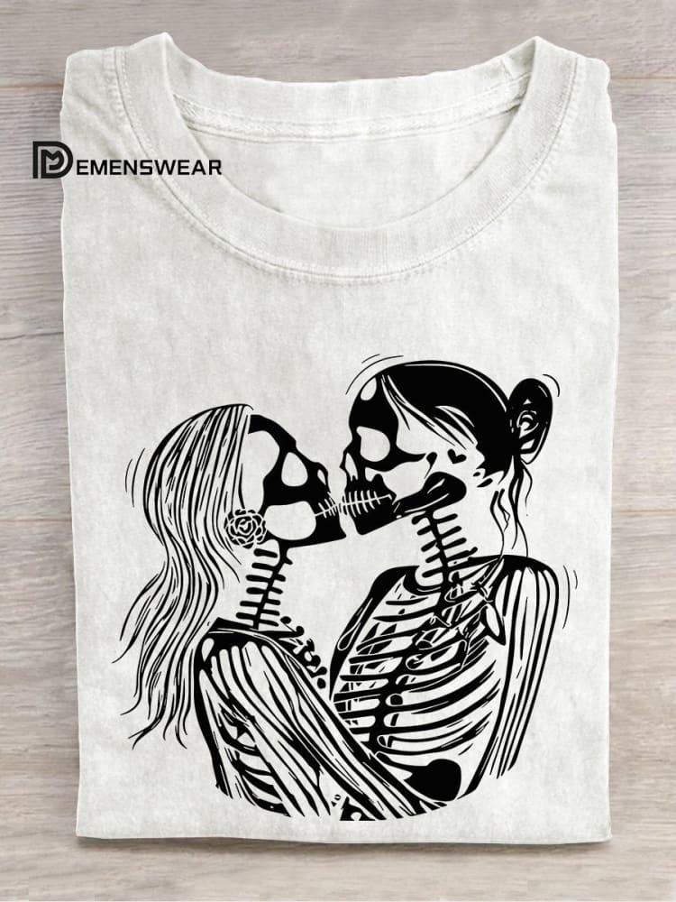 Women's LGBT Kissing Skeleton Lesbian Couple Pride Casual Print T-shirt