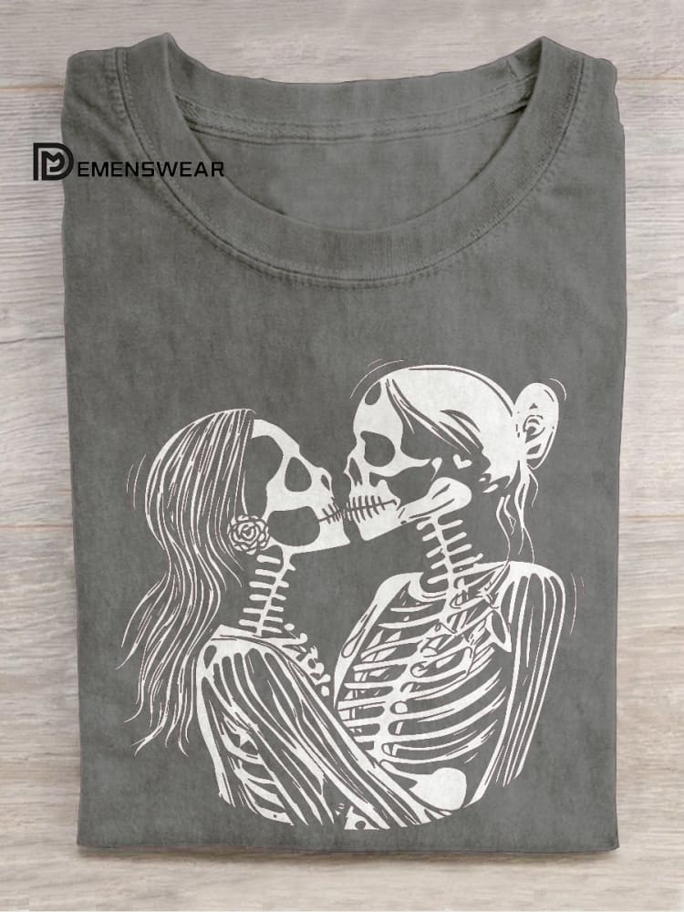 Women's LGBT Kissing Skeleton Lesbian Couple Pride Casual Print T-shirt
