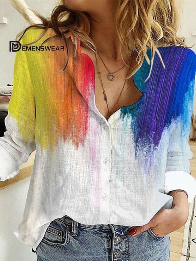 Women's LGBT Pride Art Love Is Love Rainbow Flag Print Casual Shirt