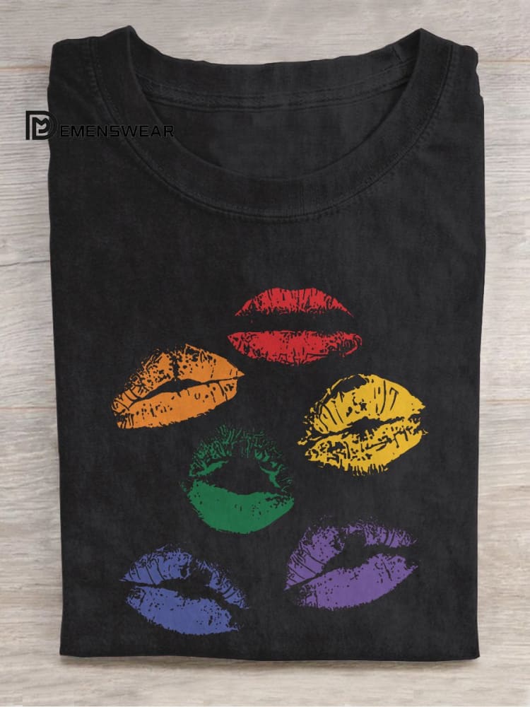 LGBT Kiss Pride Discreet Protect Trans Say Gay Queer Rainbow Casual Print T-shirt