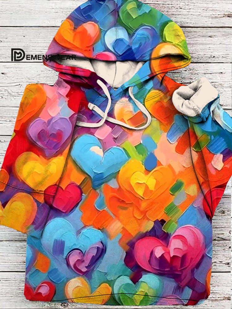 Men's Rainbow Colors Love Paint Doodle Art Print Hoodie