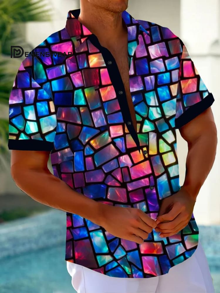 Vintage Geometric Colorful Plaid Print Polo Shirt Stretch Comfortable Camping Pullover Polo Shirt Big Tall