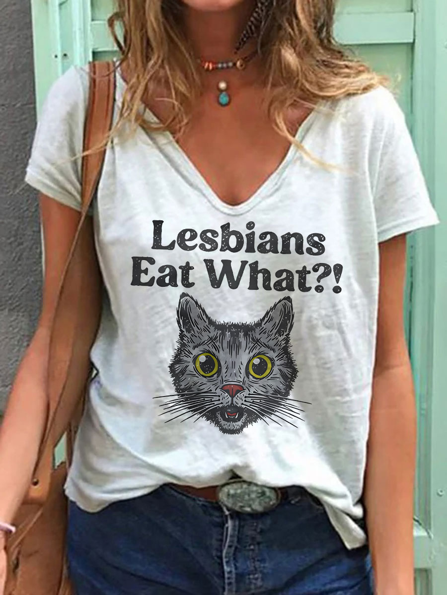 Women's Lesbians Eat What? Casual Print V-neck Casual T-Shirt